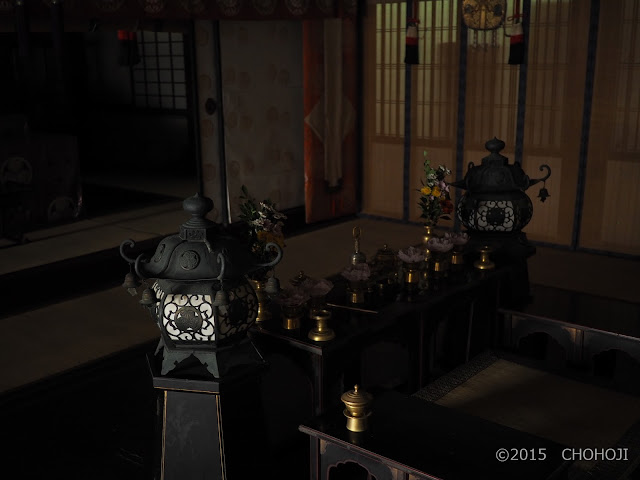 鎌倉時代の密教式建築では一般的な間仕切り方法です本尊は特注のLEDライトで照らしています