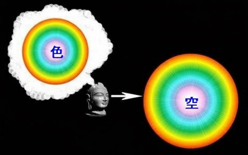 この図式で言えば、「色(しき)」は転倒した夢想で、この「色」を遠離して「空(くう)」を観るのが仏教の修行の肝心要の要点です